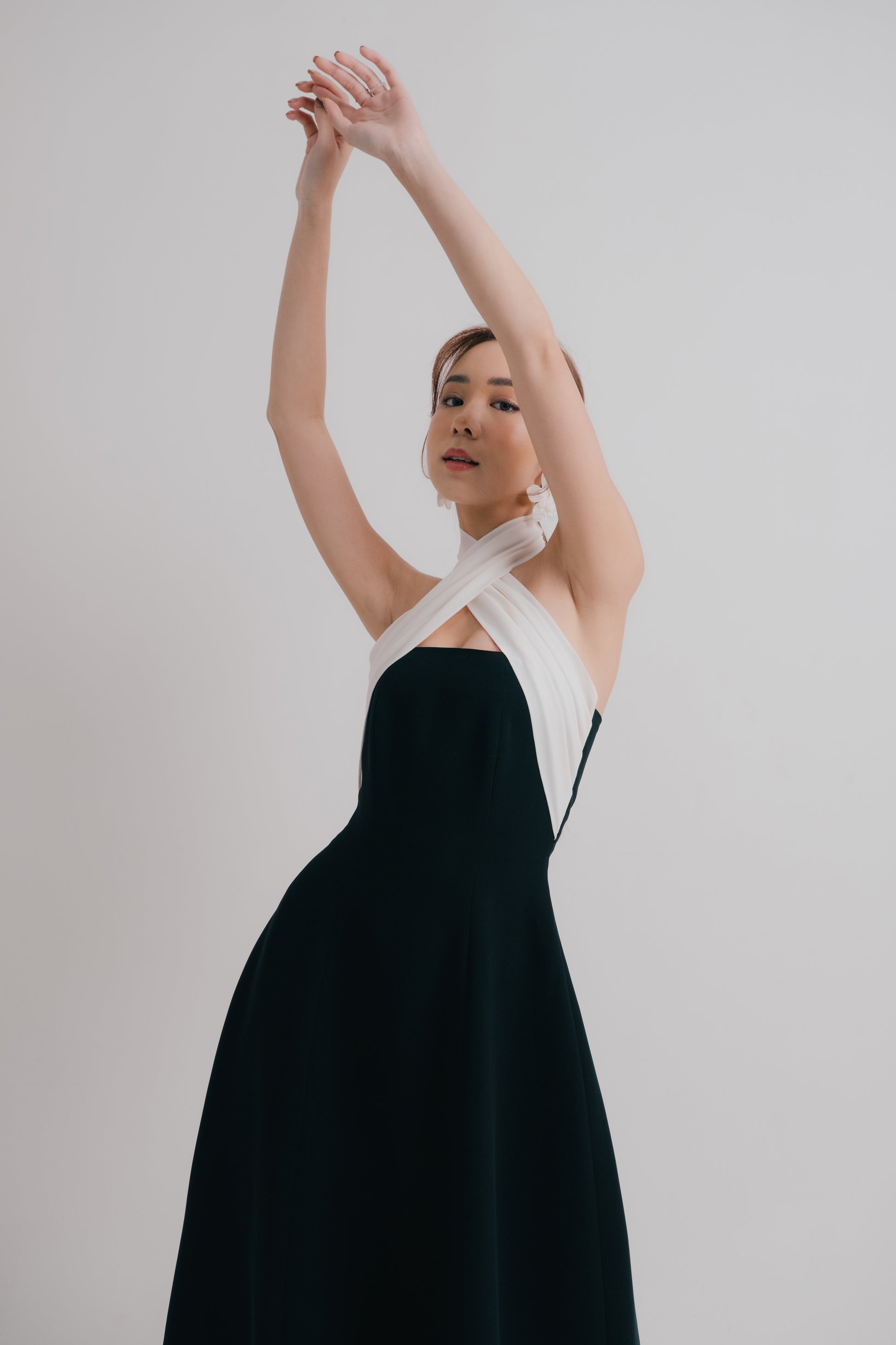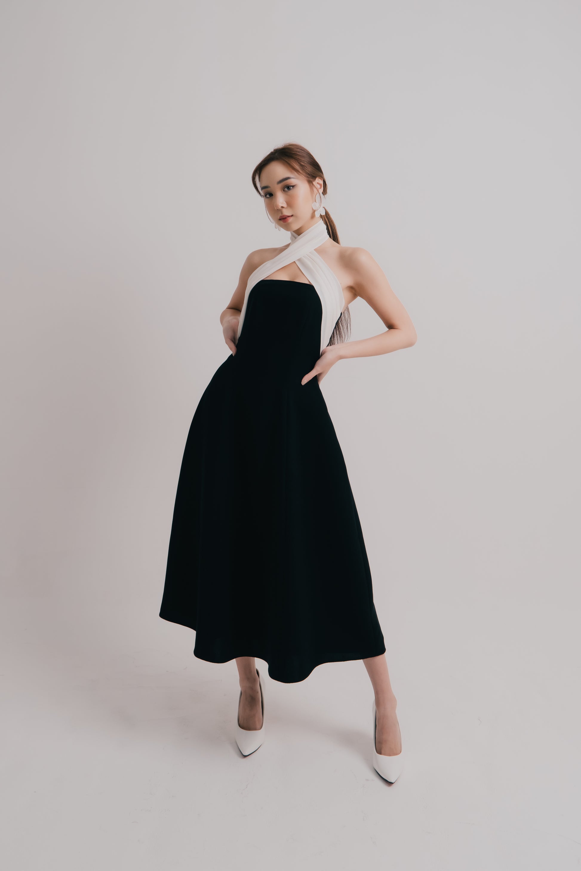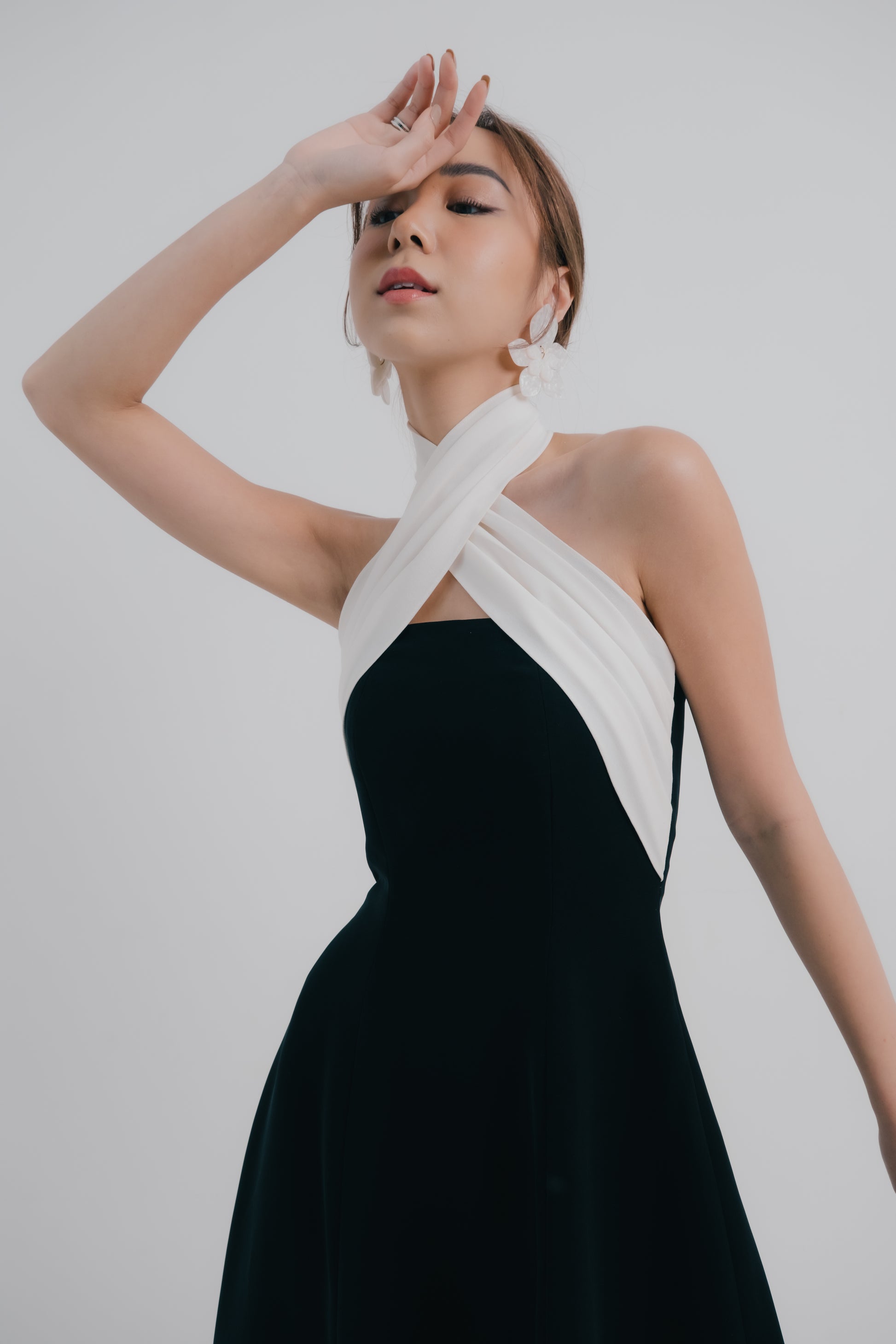 The Blaire Dress features a midi length and halter neck design for an elegant and timeless look. The classic black and white color combination adds sophistication to this versatile piece. The Blaire Dress will elevate your style with its chic and modern features.
